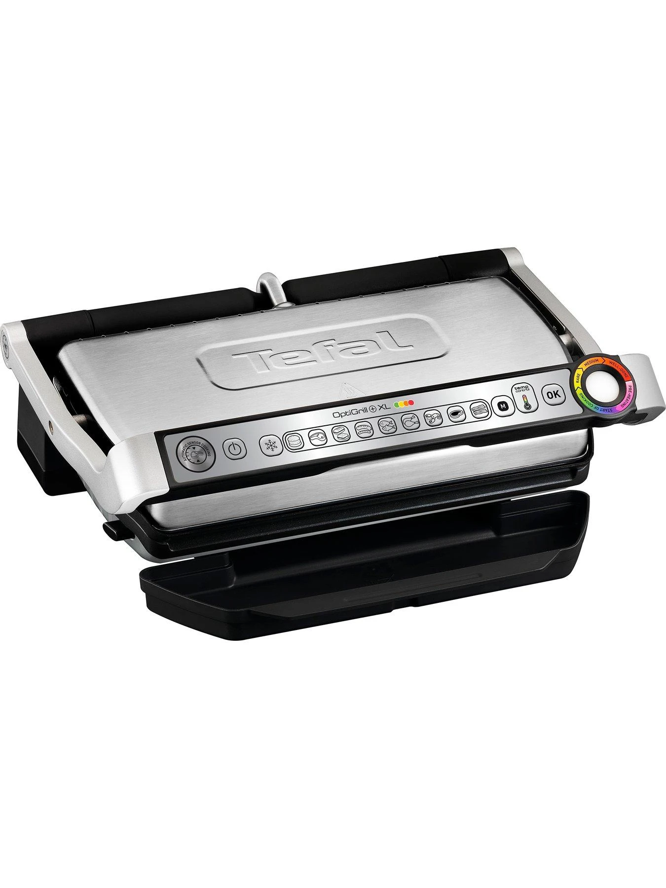 There’s a cooking level indicator for perfect grilling results from rare to well-done and a manual mode with 4 adjustable temperatures to cook all sorts of food. With the Automatic Sensor Cooking technology, time and temperature are automatically adjusted to the thickness and number of items placed on the grill based on the 9 cooking programmes and a frozen food mode.