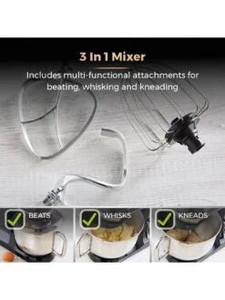 Further enhance your versatility in the kitchen with the 3 attachments included – Balloon Whisk, Beater and Dough Hook. Use the Beater for beating together ingredients for a cake mixture, the Whisk for making a buttercream topping, and the Dough Hook for kneading bread or pizza dough.