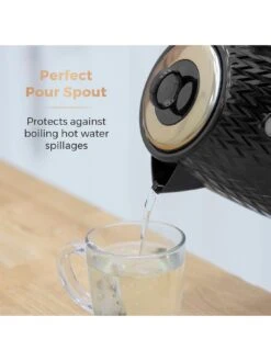 This kettle is stylish as well as practical! The striking Empire patterned design comes with a sleek black coating and bronze details. You can also coordinate your kitchen top with the matching Tower Empire 4-Slice Toaster – see item number R3UHJ.