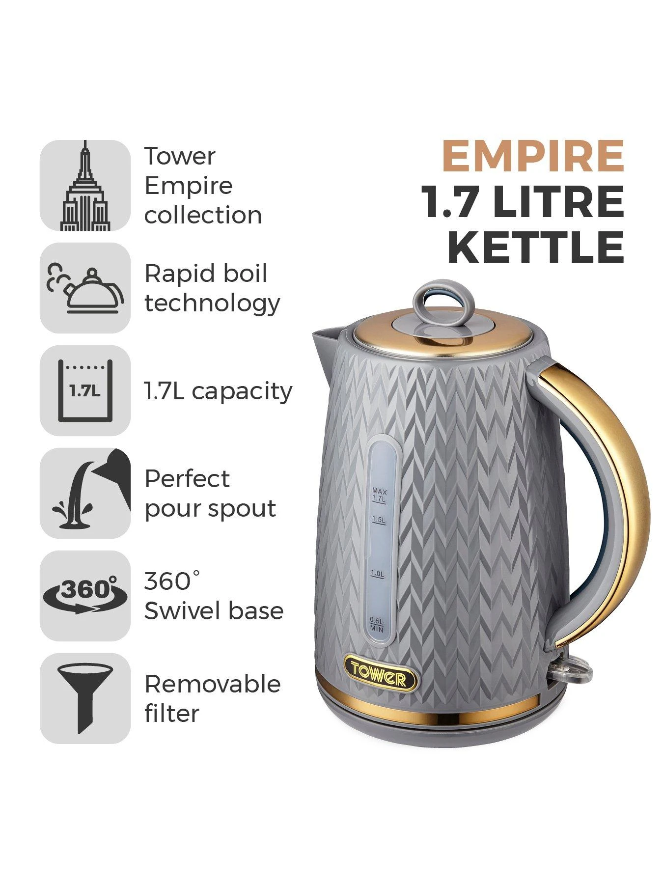 The Tower Empire 1.7-Litre Textured Kettle brings a high level to design to your kitchen top.