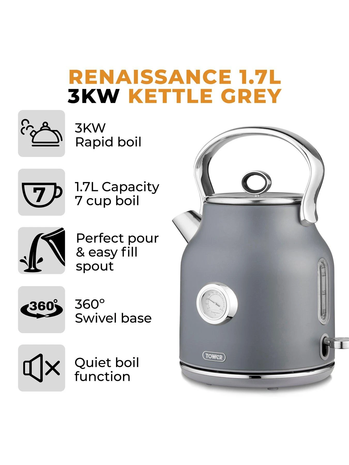 Tower T10063GRY Renaissance 1.7L 3kW Kettle – quick, quiet and stylish.