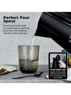 Using the flip-top lid, you can easily refill the kettle as required while keeping an eye on the water level indicator window. A perfect pour spout prevents any spillages, while the removable and washable filter ensures you enjoy the best taste possible. Boil dry protection automatically switches the heating element off if there’s no water inside the kettle.