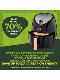Styled in sleek black with sophisticated rose gold details, this Air Fryer will look contemporary on any kitchen counter. It’s also easy to clean, with a pull-out drawer that can be hand washed in seconds, while the removable basket is fully dishwasher-safe.