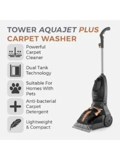 Keep your carpets fresh and clean with this portable Tower AQUAJET PLUS carpet washer. The powerful 500W motor removes the toughest of stains, mites and other allergens for a fresher looking carpet, ideal for busy family homes with pets and allergies.