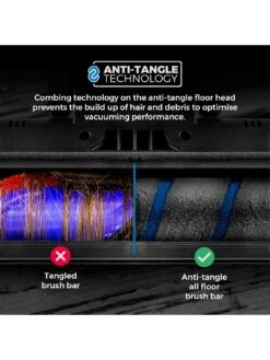 The 3-in-1 floor head includes an anti-tangle brush head, which prevents hairs from tightly wrapping around the brush bar, ensuring continuous smooth running.