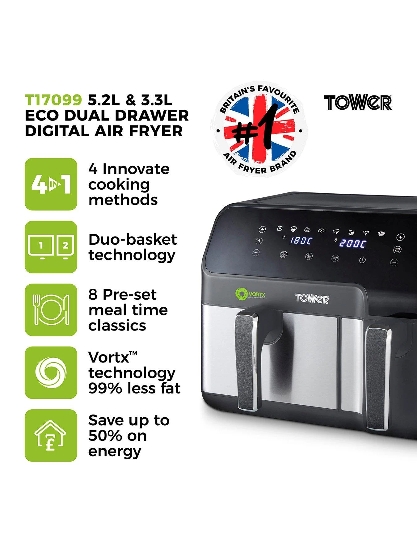 Tower Vortx Duo Basket 5.2L + 3.3L Air Fryer – the easy way to create tasty meals for all the family.
