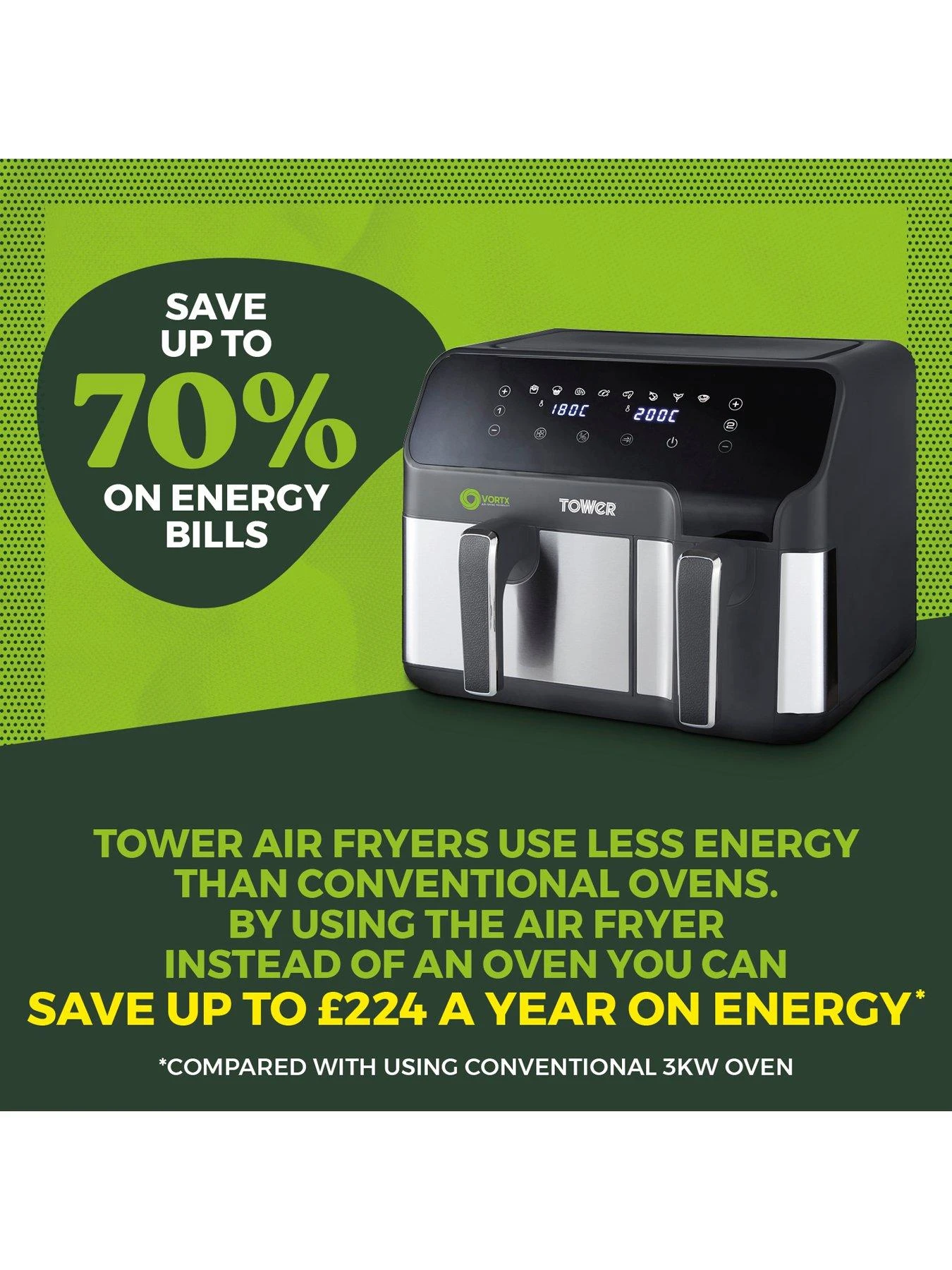 Exclusive to Tower Air Fryers, Vortx technology rapidly circulates hot air around food. Cooking up to 30% faster than a conventional oven and using 99% less oil, allowing you to save up to 70% on your energy. With Vortx frying, you lose the fat, not the flavour, cooking your ingredients with extra-crispiness and the same delicious fried taste.