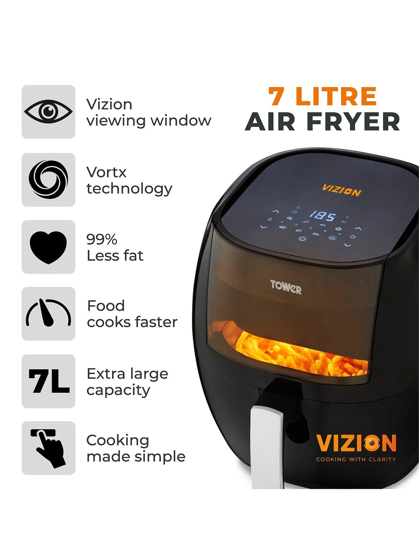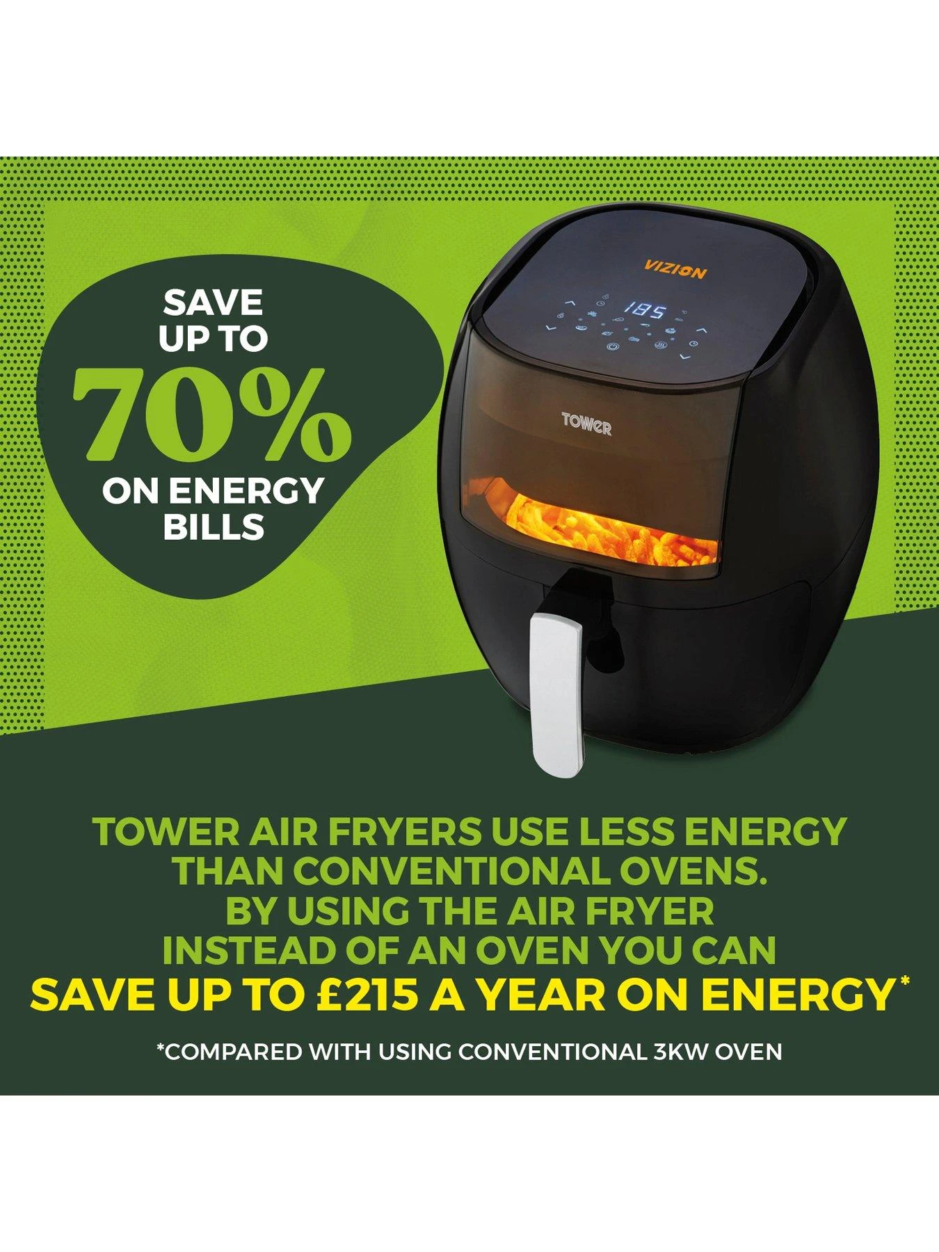 The Tower Vortx Vizion 7L Digital Air Fryer gives you tasty food and big energy savings.