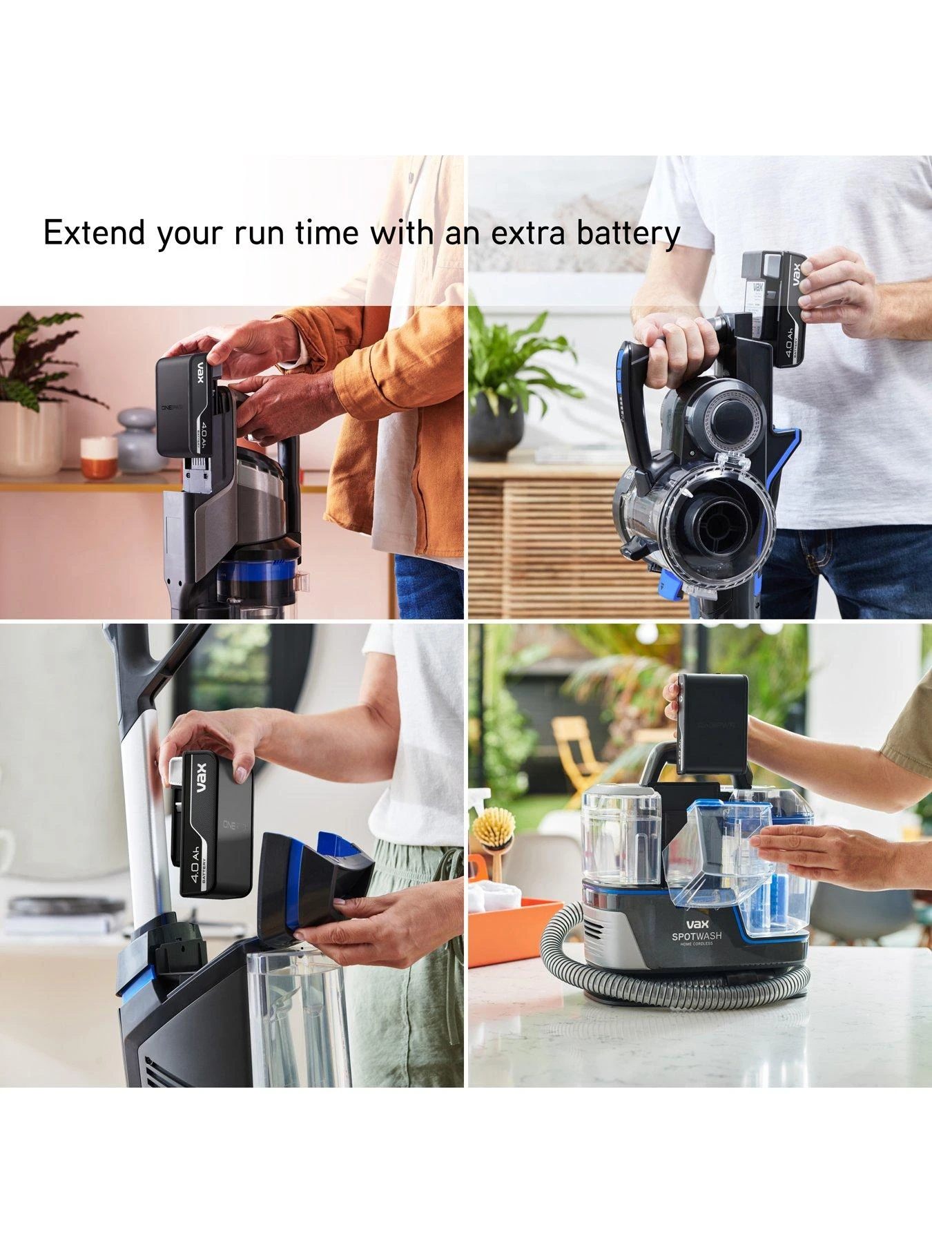 Compatible with the full Vax OnePWR range. Every OnePWR battery fits every OnePWR product for maximum performance, ease and convenience. High performance cordless products for all your household cleaning needs.