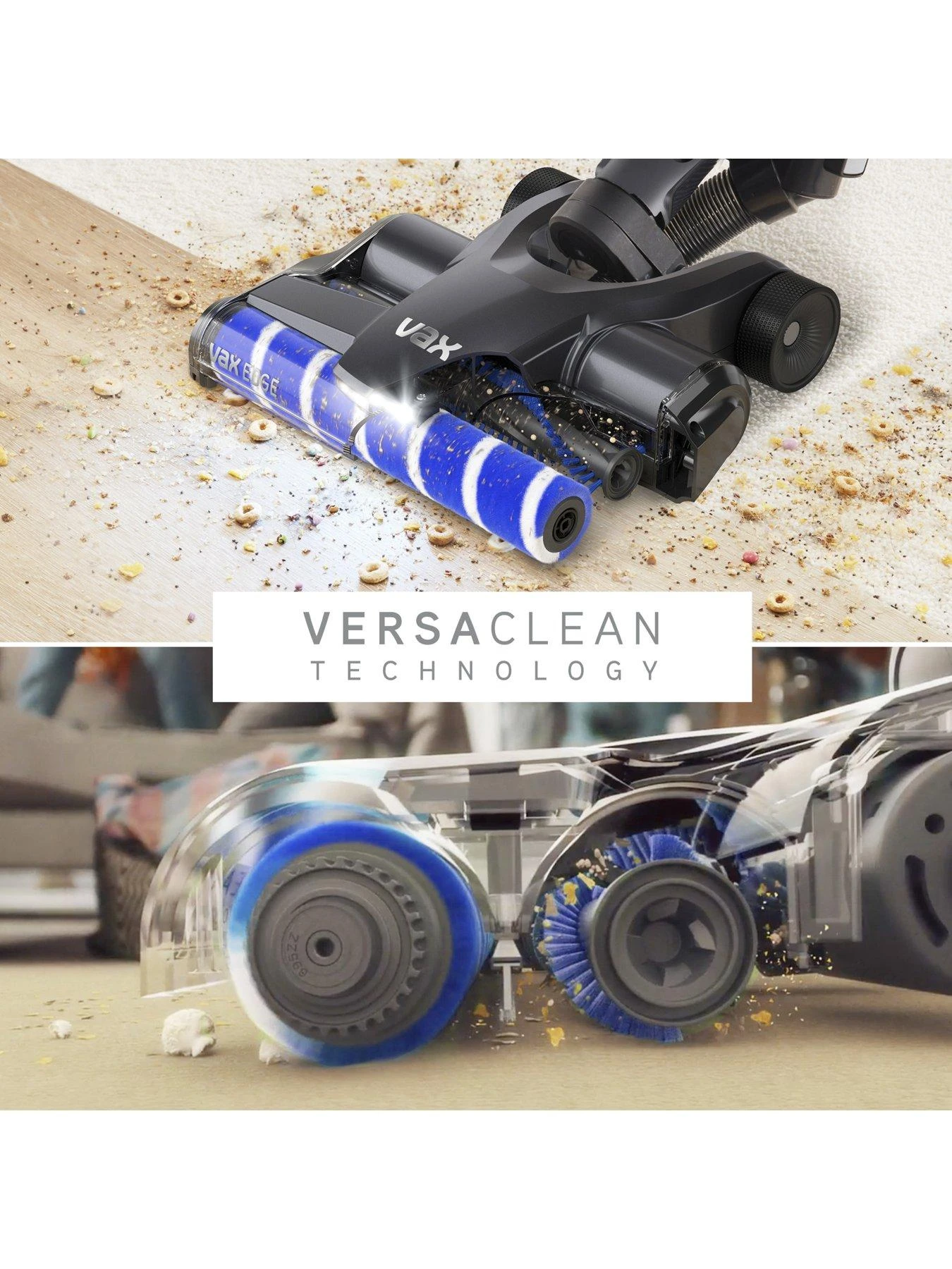 With full size performance and capacity, VersaClean Technology and up to 100 minutes runtime*; clean with ease, for longer and with fewer interruptions. Engineered for optimum pick up throughout the whole home, VersaClean Technology is made up of two brushbars that tackle both carpets and hard floors by agitating and lifting debris – big and small.