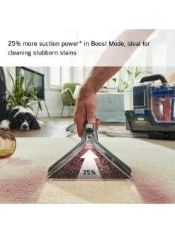 Switch to boost mode to get 25% more suction power* to clean stubborn stains and pet messes. Plus, with no compromise on performance, get the suction power of a corded SpotWasher.Δ
