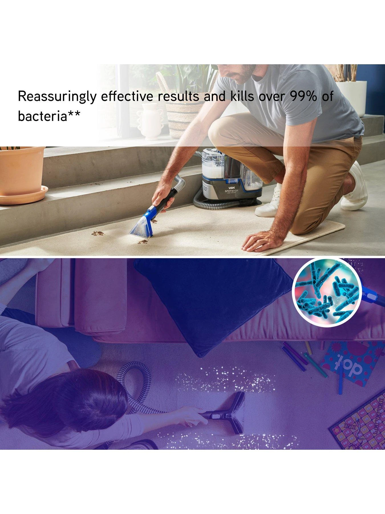 Using with VAX SpotWash Antibacterial Solution provides powerful extraction, removing stains and dirt from deep within carpets and upholstery, giving you a reassuring hygienic clean.