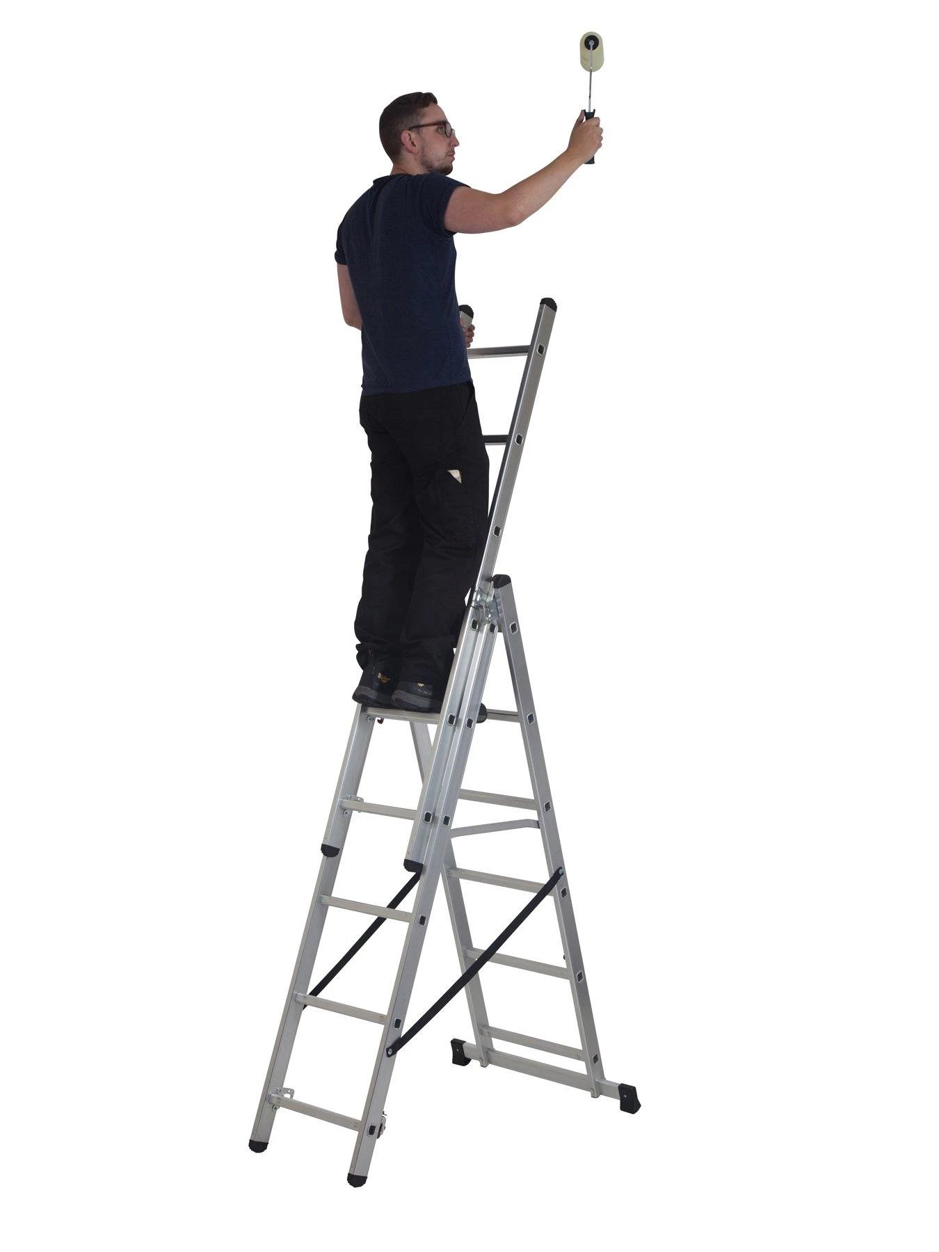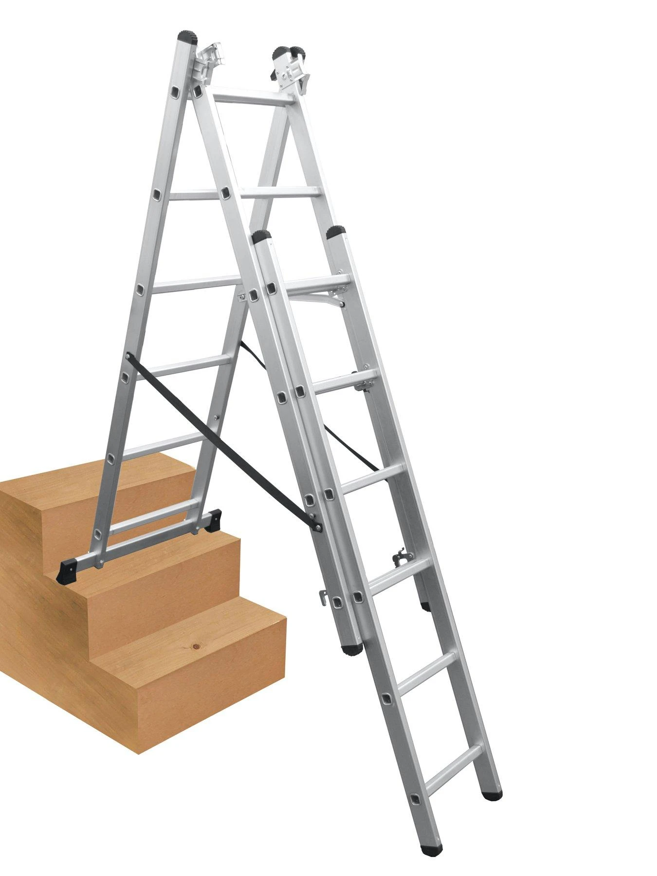 - Combines a stepladder, extension ladder, free standing extension ladder and a stairwell ladder all in one product.