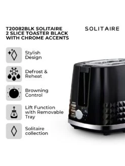 Tower T20082BLK Solitaire 2-Slice Toaster 850W – Black With Chrome Accents